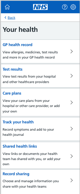 All of the content in the Your Health hub has been designed by myself, working alongside a UX designer and UX researcher.
